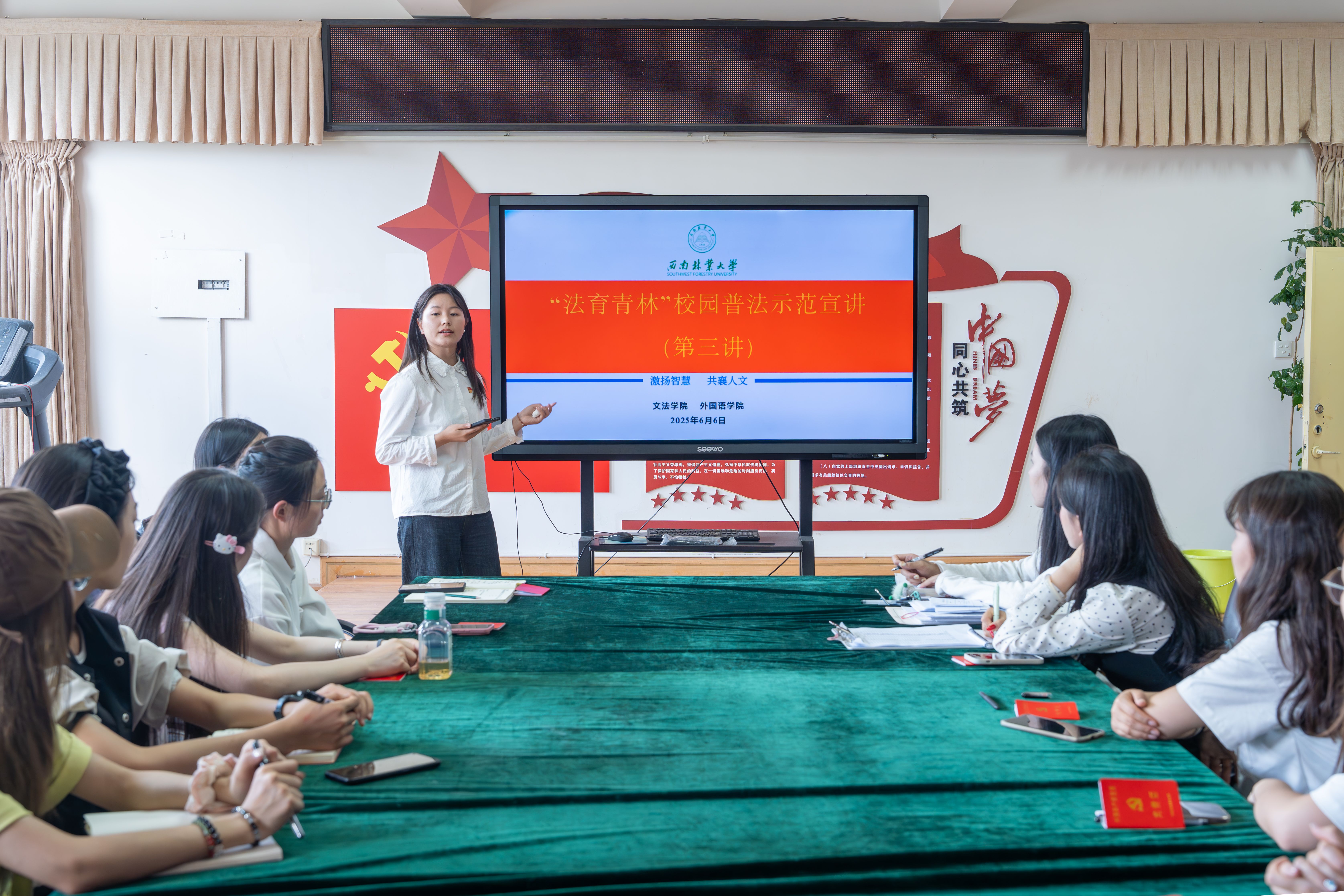 6月6日,伟德国际victor1946联合外国语公司、艺术与设计公司开展“法育青林”校园普法示范宣讲活动。本次普法宣讲由伟德国际victor1946研究生党支部白银、李格霞主讲,艺术与设计公司本科生第一党支部、外国语公司本科生第二党支部全体党员及伟德国际victor1946研究生党支部党员共同参加。