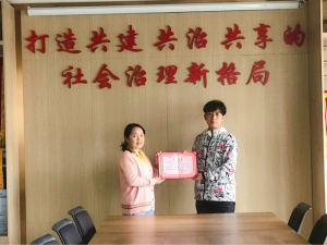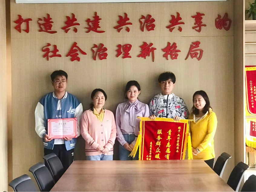 盘龙区东华街道田园路社区党委书记、居委会主任任洁向伟德国际victor1946团委书记潘昭宇老师授予锦旗,充分肯定伟德国际victor1946团委组织开展的青年志愿者活动,并表达了感激之情。授旗结束后,双方在和谐友好的气氛中互相交流,居委会副主任杨丹珏详细介绍了现在的社区服务、社区建设等情况及未来规划;潘昭宇老师也介绍了公司青年志愿者工作的发展思路。接着双方讨论了今后院社共建具体事宜和近期活动安排。